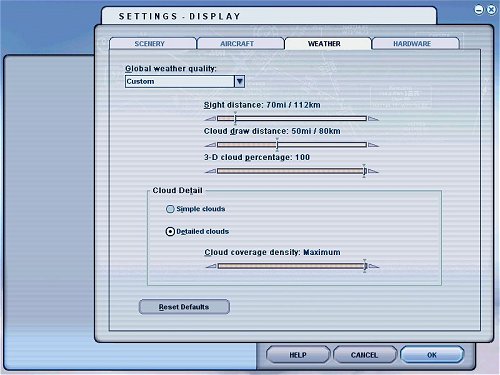 auf das Wettermenü Ihres Simulators. Wird